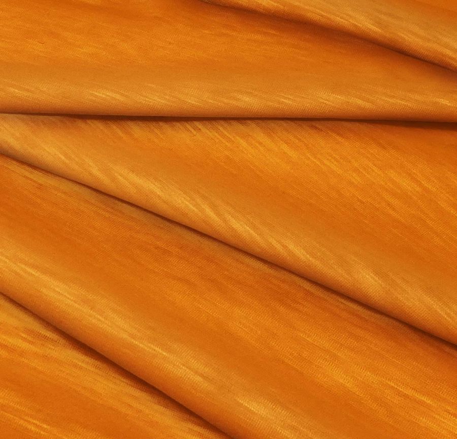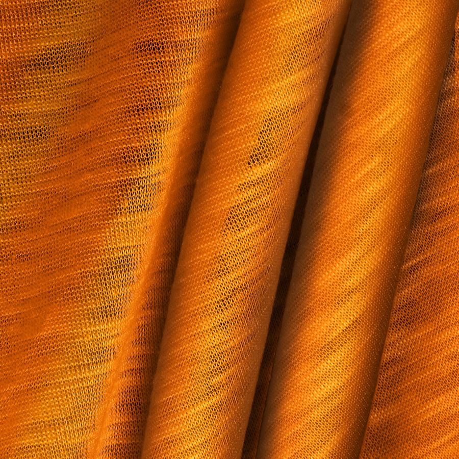 La tela base es la Punto Camiseta Jaspeado - Dubái, de tipo punto y con una composición del 100% de poliéster. Su gramaje es de 135 gr/m2 y su ancho es de 160 cm. El color liso impreso en esta tela es el naranja aeroespacial, con un CMYK de 0 69 100 0. Este color es vibrante y energético, aportando un toque de vitalidad y creatividad al tejido. Se trata de un color que combina muy bien con tonos fríos, como el azul eléctrico, así como con tonos más cálidos, como un rosa coral.