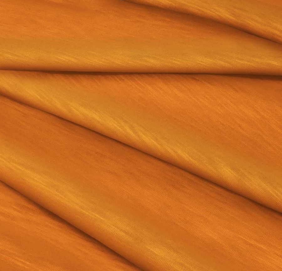 La tela tiene una textura táctil lisa y elástica, con un acabado visual que combina distintos tonos jaspeados y translúcidos en la superficie. El color naranja butano se combina a la perfección con amarillos, verdes y azules para crear un efecto atractivo y armonioso. La tela se imprime a una sola cara por impresión digital textil, siendo importante mencionar que se trata de un tejido impreso y no tintado.