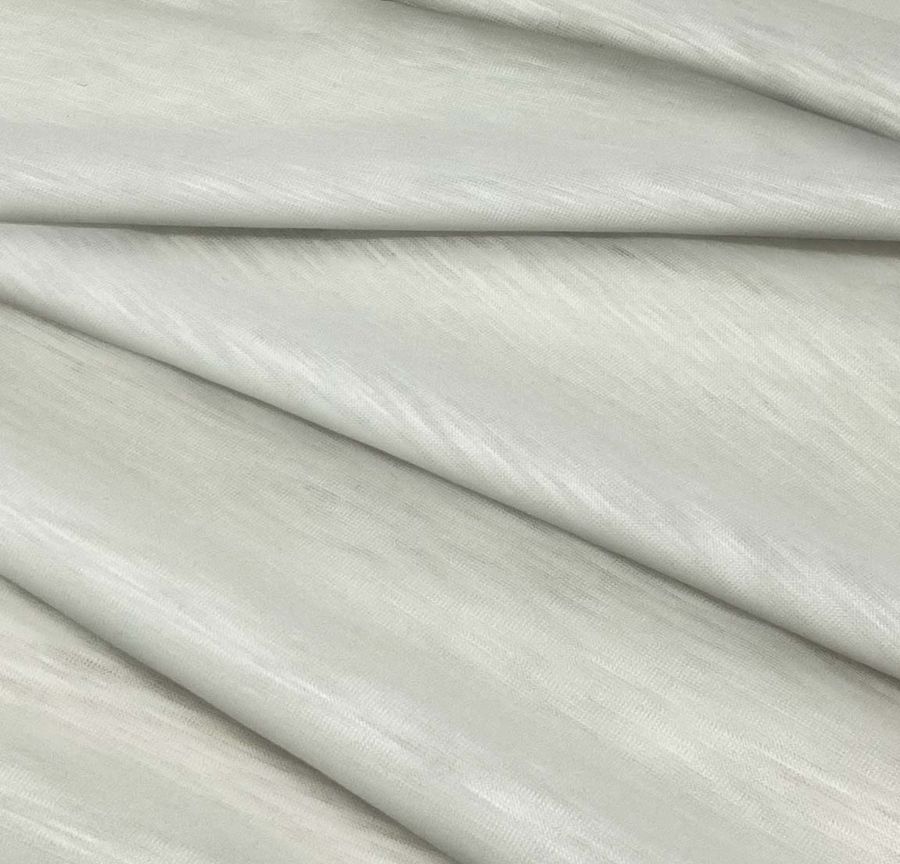 En cuanto a las características generales, la tela tiene un tacto suave y es elástica, lo que la hace ideal para prendas de punto, como camisetas. Además, su textura jaspeada y visual le da un acabado interesante y distintivo.