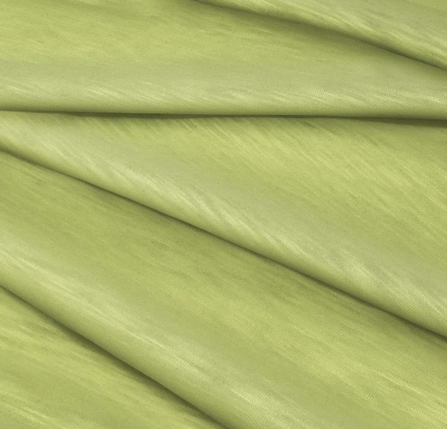 La tela presenta una textura jaspeada y es elástica tanto en tacto como en visual. El color liso impreso aporta una textura lisa y translúcida. Este color secundario encaja perfectamente con tonalidades tierra, marrones y verdes. Además, su combinación con blanco y negro crea un contraste sobrio y elegante.
