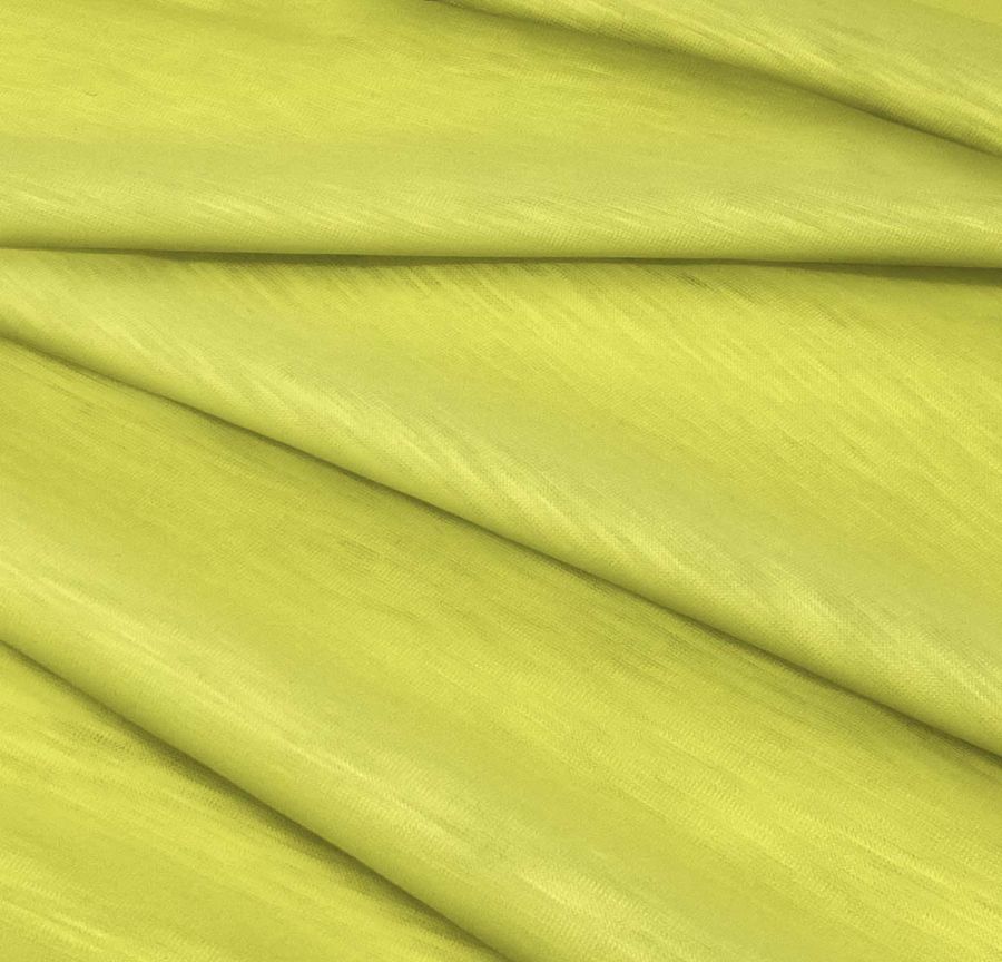 La tela base es el Punto Camiseta Jaspeado - Dubái, una tela de punto compuesta por un 100% de poliéster con un gramaje de 135 gr/m2, un ancho de 160 cm y diversos cuidados para su mantenimiento. El color liso impreso es un amarillo fulminante con un contenido de tinta cian de 14, tinta magenta de 0, tinta yellow de 75 y tinta black de 0, lo que resulta en un CMYK de 14 0 75 0. Este amarillo es un color vibrante y atrevido que combina muy bien con tonos neutros como el blanco, el gris y el negro, y también con colores brillantes como el rojo, el rosa y el naranja.