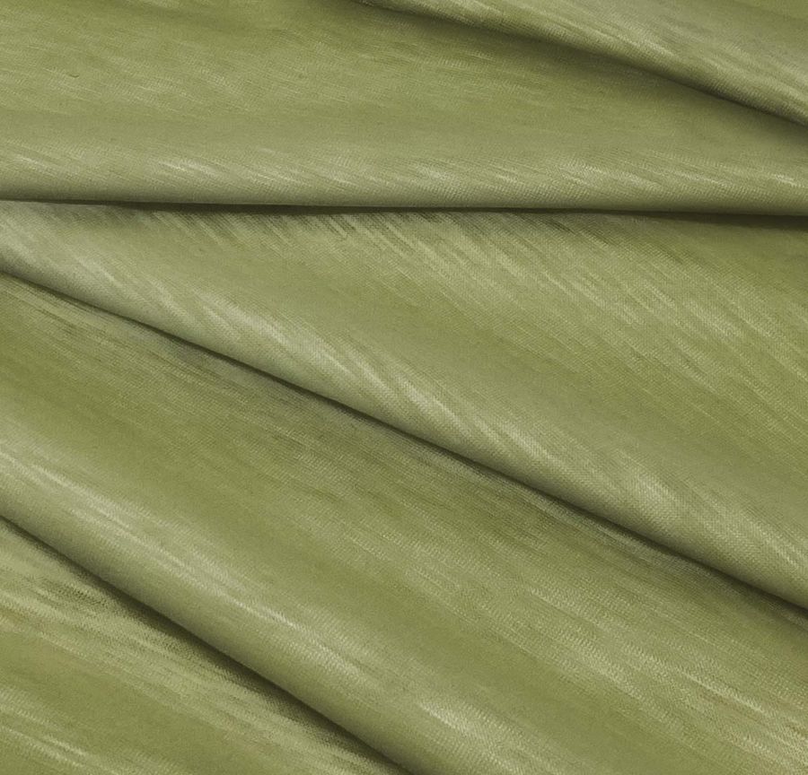 La tela base es el Punto Camiseta Jaspeado - Dubái, una tela de punto de poliéster con un gramaje de 135 gr/m2 y un ancho de 160 cm. El color liso impreso es un tono de verde, que incluye tintas cian, magenta, amarillo y negro en proporciones de 48, 34, 69 y 19 respectivamente, dando como resultado un CMYK de 48 34 69 19. El color liso presenta una tonalidad verdosa similar a la de las algas. Esta tonalidad combina especialmente bien con otros tonos verdosos y azulados.