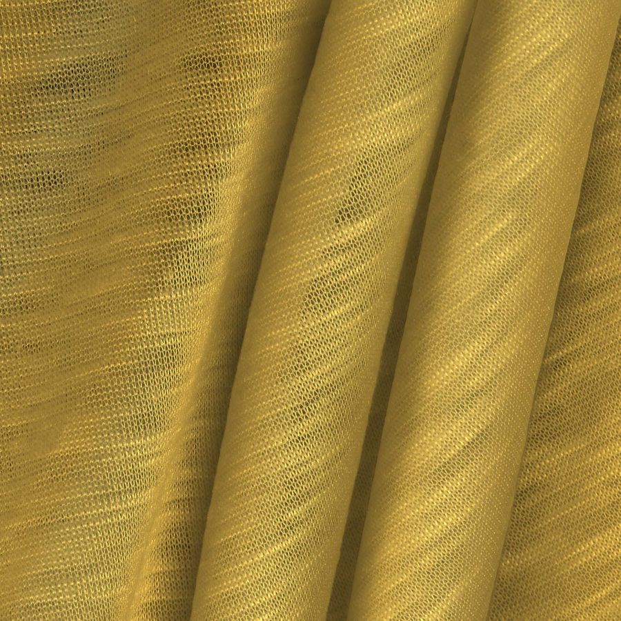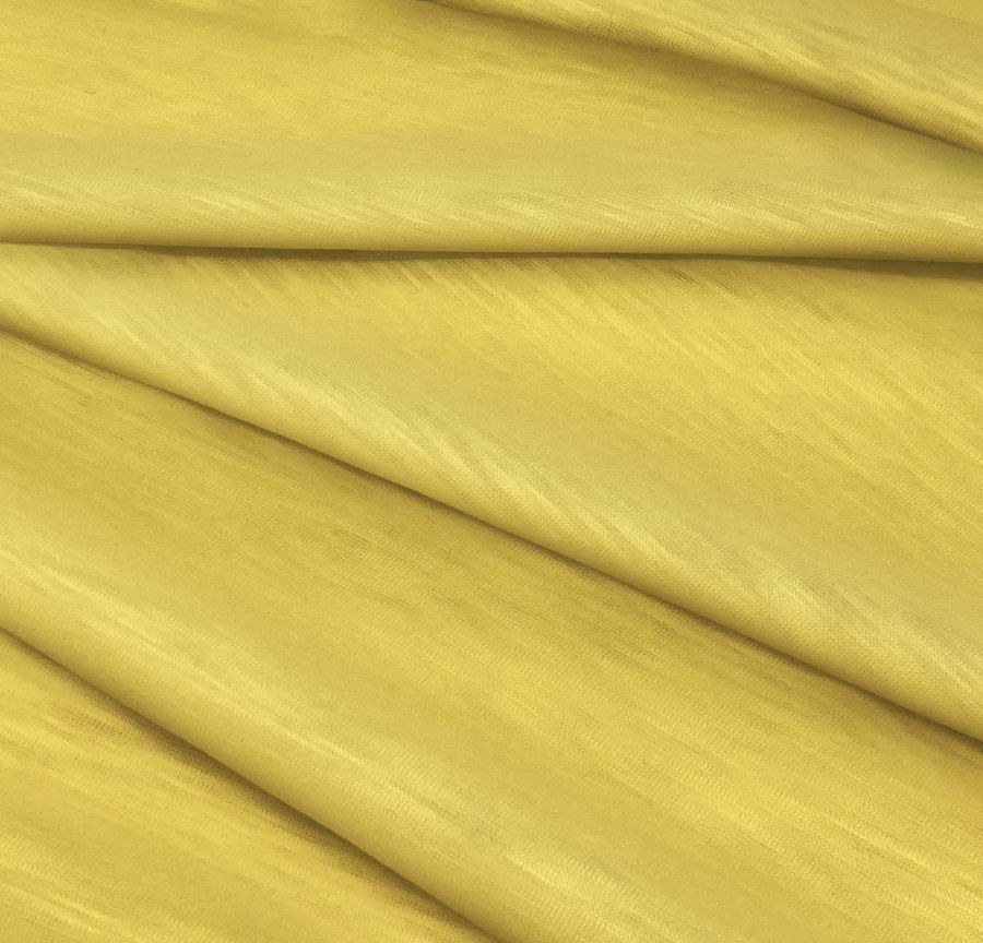 La tela base Punto Camiseta Jaspeado - Dubái es una tela de punto con composición 100% poliéster y un gramaje de 135 gr/m2. Su ancho es de 160cm y está disponible en un color liso impreso en tono amarillo llama con un CMYK de 0 21 74 0. Este tono presenta un matiz amarillo intenso y cálido que puede combinarse perfectamente con tonos marrones, cremas e incluso grises. Es importante destacar que el tejido está impreso con el color liso a una sola cara por impresión digital textil.