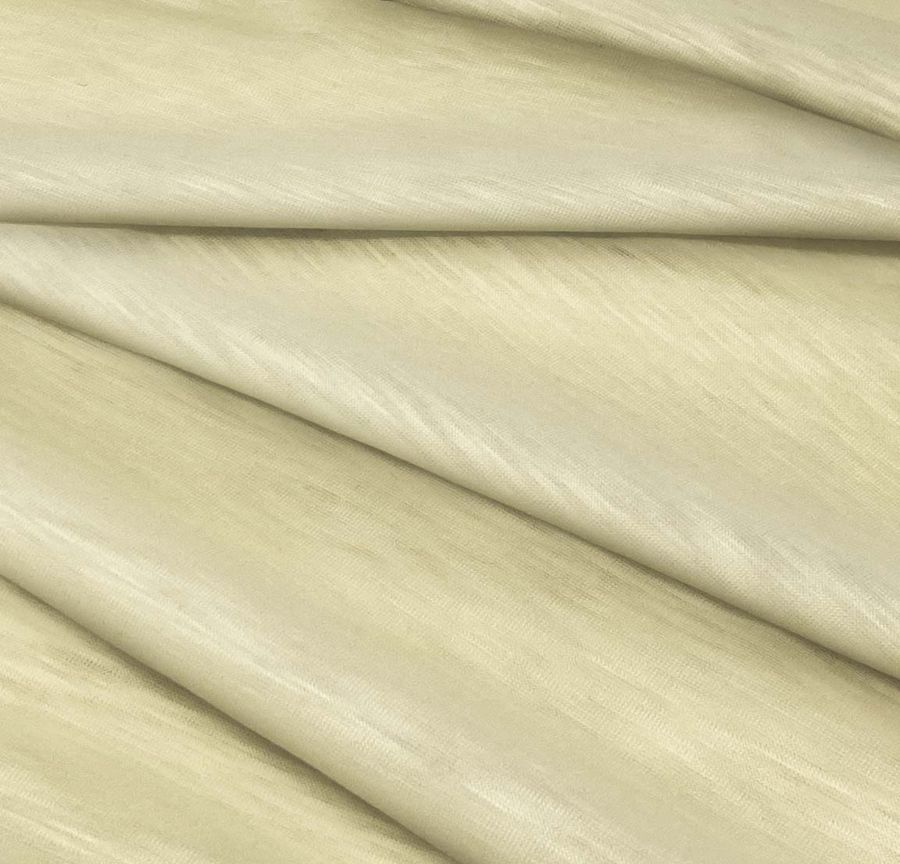 Las características generales de la tela base incluyen una textura elástica que la hace adecuada para su uso en prendas de punto, especialmente camisetas. Posee una excelente transpirabilidad y adaptabilidad al cuerpo, lo que la hace confortable y fácil de llevar. En cuanto al color amarillo mantecoso, es un tono suave y cálido que se asocia con la alegría y la tranquilidad. Combina especialmente bien con colores azules y verdes, así como con tonos neutros como blancos o grises.