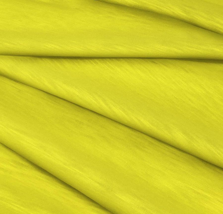 La tela base, conocida como Punto Camiseta Jaspeado - Dubái, es una tela de punto compuesta al 100% por poliéster, con un gramaje de 135 gr/m2 y un ancho de 160 cm. El color liso impreso en esta tela es un vibrante amarillo neón, representado por un CMYK de 7 0 85 0, que aporta un toque de energía y luminosidad a cualquier prenda. Este color combina bien con tonos oscuros como el negro y el gris, así como con tonos pastel y neutros.