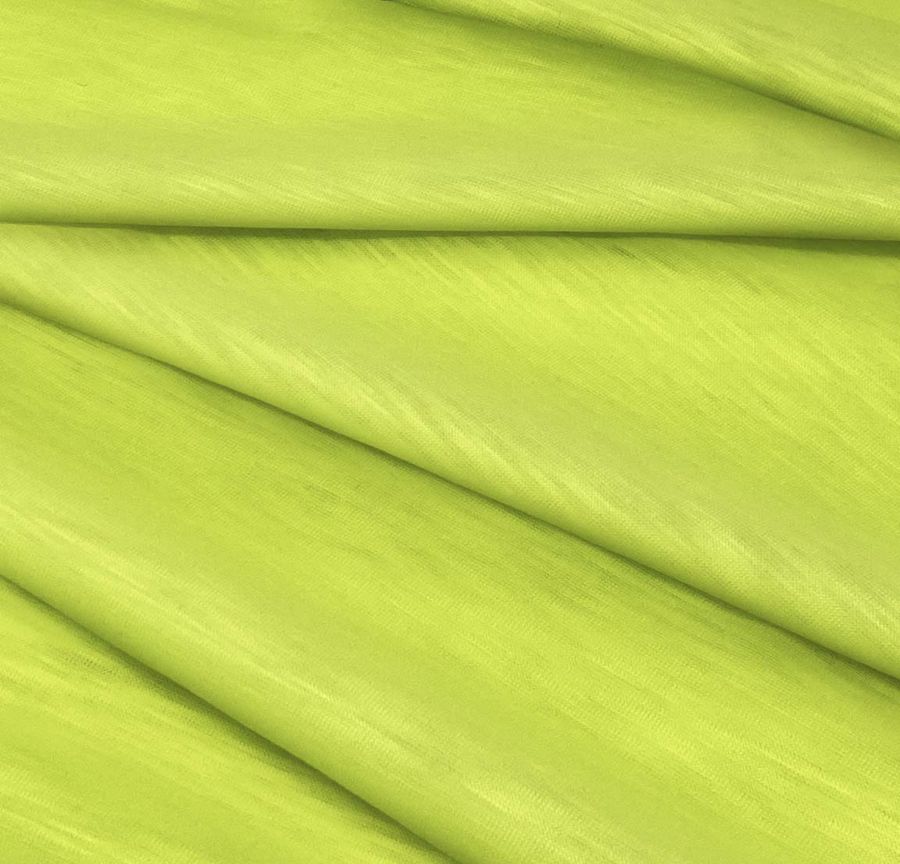 El tejido está impreso con el color liso a una sola cara por impresión digital textil, lo que significa que no es un tejido tintado sino impreso por una sola cara. La tela base tiene una textura lisa y visual translúcida y jaspeada, y se caracteriza por su tacto elástico. El color liso impreso es brillante, con una buena fijación y resistencia al lavado.