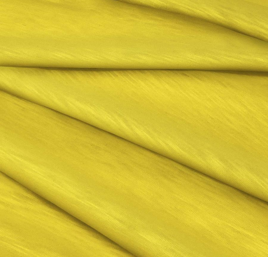 La tela base es la Punto Camiseta Jaspeado - Dubái, una tela de punto compuesta al 100% de poliéster con un gramaje de 135 gr/m2 y un ancho de 160 cm. El color liso impreso es amarillo postal, cuyo CMYK es 1 17 85 0. Este color secundario se describe simbólicamente como portador de la energía del sol y la felicidad, con una capacidad de estimular la mente y las emociones. Su tonalidad cálida combina bien con matices de verde, azul y morado.
