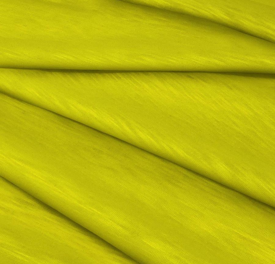 La tela base, Punto Camiseta Jaspeado - Dubái, es una tela de punto con una composición del 100% poliéster, un gramaje de 135 gr/m2 y un ancho de 160 cm. El color liso impreso tiene un tono amarillo sucio con un CMYK de 26 12 97 1, lo que le da una apariencia translúcida y jaspeada. Este color secundario combina perfectamente con tonos tierra, ocres y marrones. Es importante destacar que la tela está impresa con el color liso a una sola cara mediante impresión digital textil, lo que significa que solo una cara tiene el color impreso.
