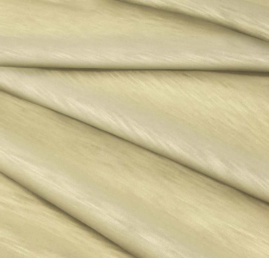 La tela base de esta prenda es el Punto Camiseta Jaspeado - Dubái, 100% poliéster con un gramaje de 135 gr/m2. El color liso impreso tiene un CMYK de 9% Cyan, 14% Magenta y 47% Yellow, lo que resulta en un tono Amarillo-Beige. La combinación de colores secundarios permite crear un aspecto cálido, luminoso y natural. Se trata de un tejido impreso a una sola cara por impresión digital textil. La tela cuenta con una estructura lisa táctil, visual translúcida y jaspeada. Es elástica y tiene una gran textura visual.