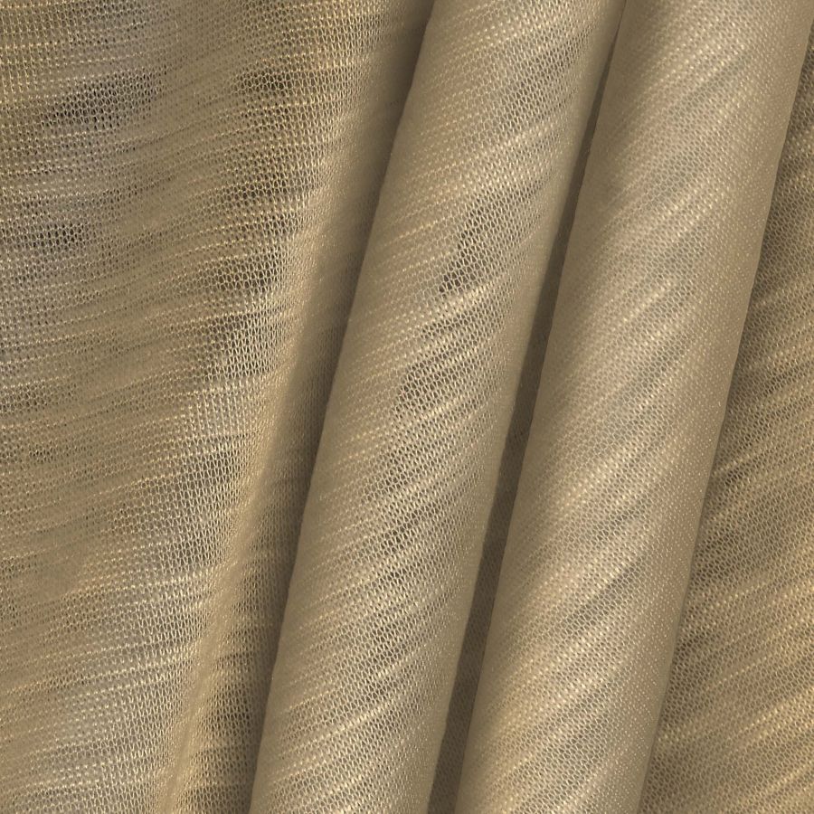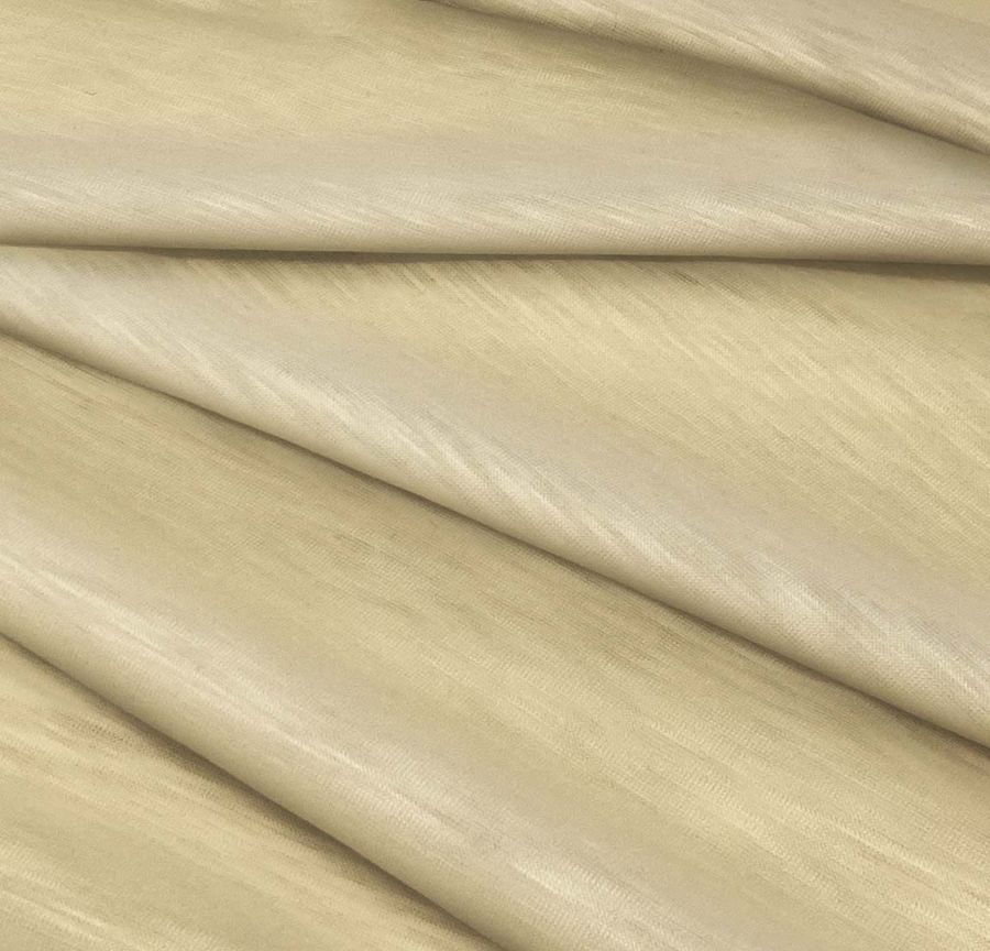 La tela base es Punto Camiseta Jaspeado - Dubái, una tela de punto de 100% poliéster con un gramaje de 135 gr/m2 y un ancho de 160 cm. El color liso impreso es Amarillo Chamois con un CMYK de 9 21 47 1. Este color secundario combina especialmente bien con tonos tierra y tonos marrones, pero también puede ser complementado con tonos pastel y blancos para un look más veraniego. Es importante mencionar que la tela está impresa con el color liso a una sola cara por impresión digital textil, no es un tejido tintado, sino impreso por una sola cara.