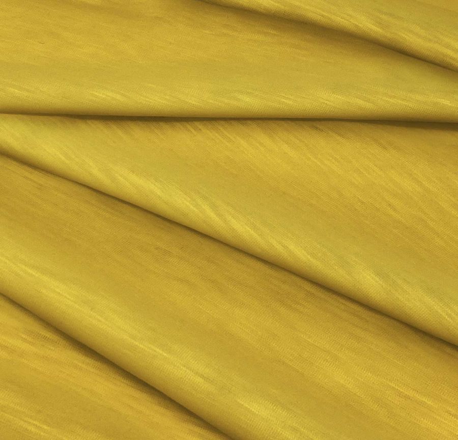 La tela base, Punto Camiseta Jaspeado - Dubái, es una Tela de Punto de 100% Poliéster con un Gramaje de 135 gr/m2 y un Ancho de Tela de 160 cm. Su color liso impreso es Amarillo Curry con un CMYK de 16 35 88 4. Este color secundario es intenso, cálido y vibrante, que evoca el sol y la energía. Combina perfectamente con marrones terrosos, rojos oscuros y tonos neutros como el negro y el gris. El tejido está impreso con el color liso a una sola cara por impresión digital textil.