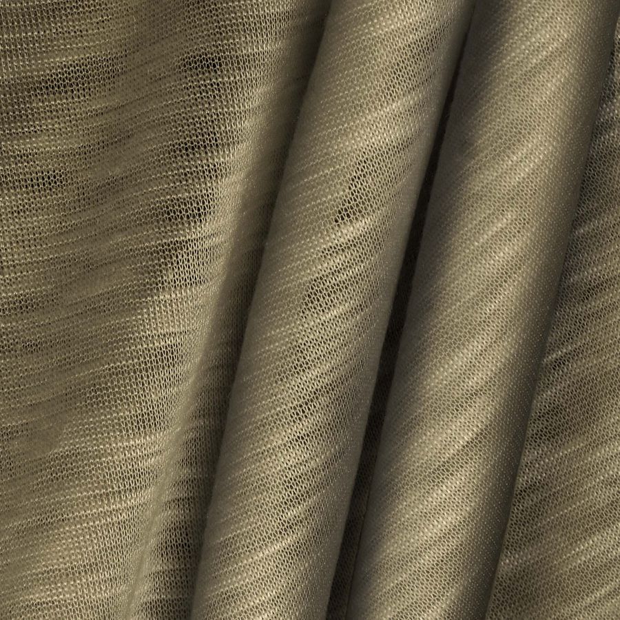 La tela base, Punto Camiseta Jaspeado - Dubái, es una tela de punto de poliéster con un gramaje de 135 gr/m2 y un ancho de 160 cm. Su color liso impreso, Marrón Corteza, tiene un CMYK de 44 40 60 28 y representa un tono terroso y cálido. Este color se combina bien con tonos similares, como el naranja y el rojo oscuro, así como con tonos más suaves como el beige. Es importante destacar que la tela está impresa con el color liso a una sola cara por impresión digital textil.