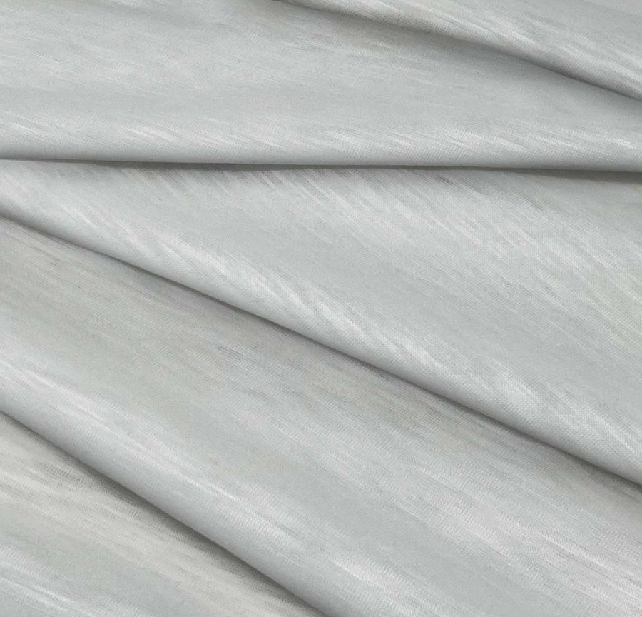 La tela base es el Punto Camiseta Jaspeado - Dubái, un tejido de punto 100% poliéster con un gramaje de 135 gr/m2 y un ancho de 160 cm. El color liso impreso es gris ceniza con un CMYK de 23 17 18 1 y destaca por su apariencia suave y elegante. Este color secundario combina especialmente bien con tonos pastel y tierra, creando un ambiente relajado y suave.