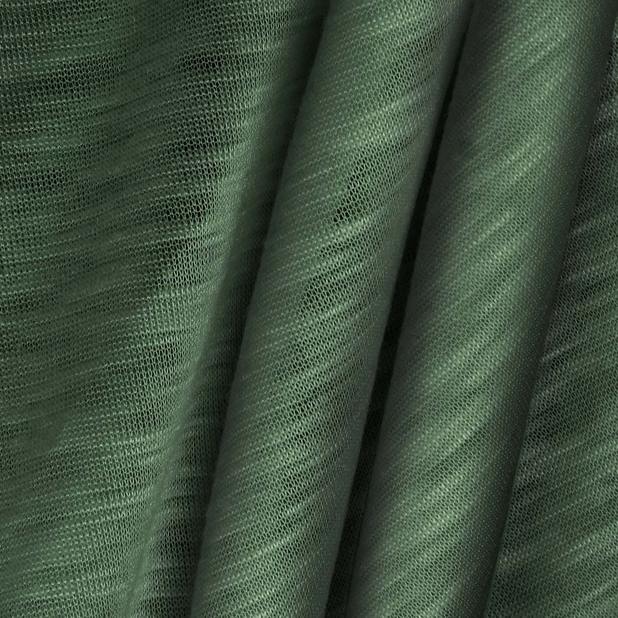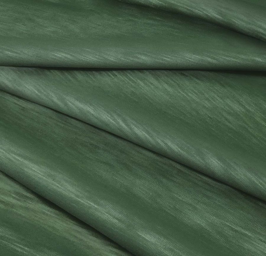 La tela base de esta prenda es el Punto Camiseta Jaspeado - Dubái, una tela de punto compuesta por 100% poliéster, con un gramaje de 135 gr/m2 y un ancho de 160 cm. El color liso impreso es un verde espinaca, cuyo CMYK es 69 44 68 41.