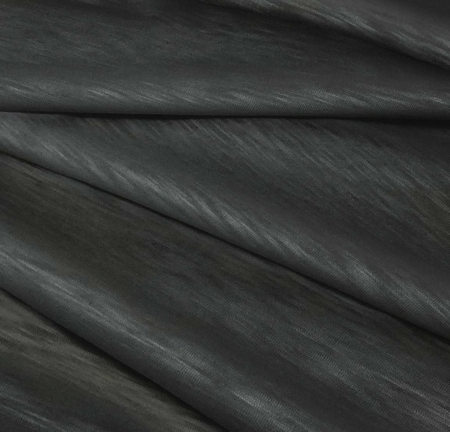 La tela base Punto Camiseta Jaspeado - Dubái de 100% poliéster presenta un color liso impreso en tonos Gris Jet, con un CMYK de 69 59 56 65. Este color secundario, conocido como gris oscuro, simboliza la estabilidad, elegancia y misterio. Combinado con tonos blancos, pasteles, rojos o naranjas, genera un impacto visual atractivo y sofisticado en piezas de moda. Este tejido está impreso con el color liso a una sola cara por impresión digital textil, lo que permite conseguir una alta calidad en la definición del color en la superficie del tejido.