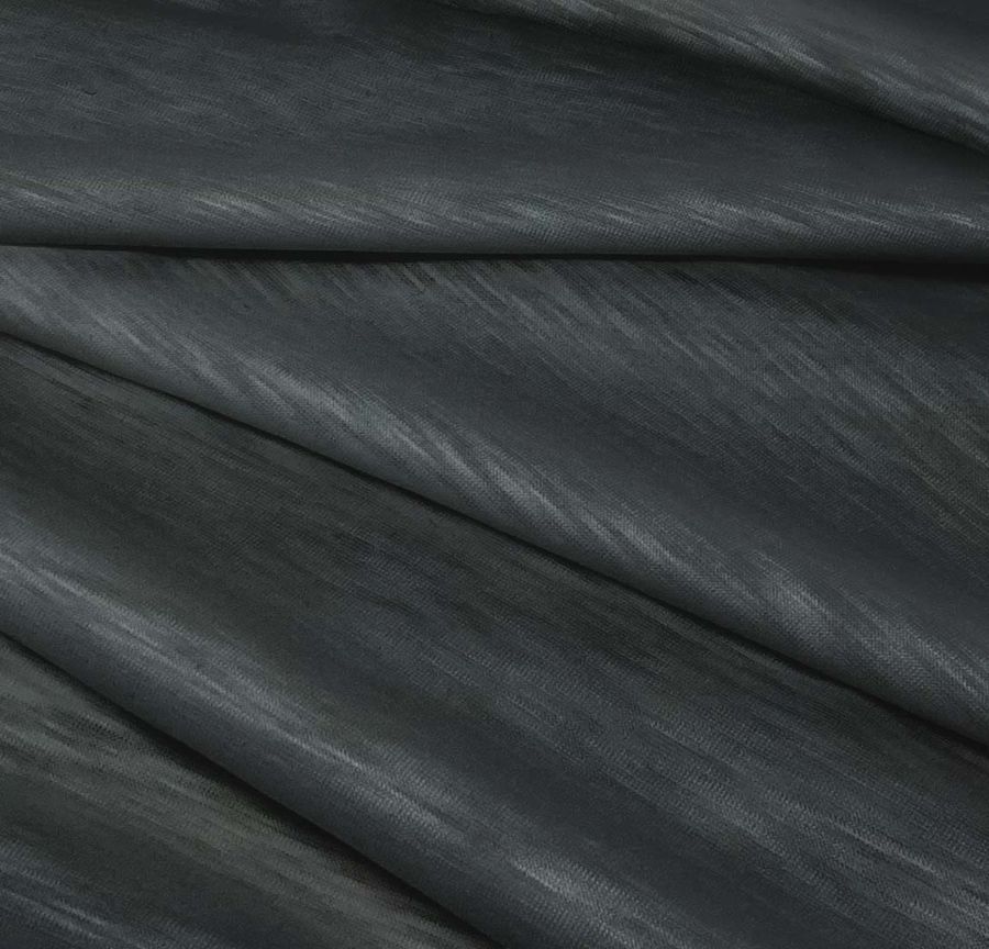 La tela base de esta prenda es la Punto Camiseta Jaspeado - Dubái, una tela de punto con una composición del 100% poliéster, con un gramaje de 135 gr/m2 y un ancho de 160 cm. El color liso impreso es de tonalidad gris onix, con una combinación de tinta cyan de 71, tinta magenta de 58, tinta yellow de 55 y tinta black de 62 (CMYK: 71 58 55 62). Este color tiene una apariencia oscurecida y profunda, que refleja el misterio y la elegancia. Se combina especialmente bien con colores brillantes y llamativos como el fucsia y el amarillo, para lograr un contraste emocionante.