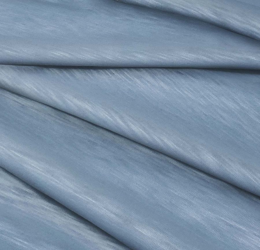 La tela base es Punto Camiseta Jaspeado - Dubái, una tela de punto compuesta al 100% de poliéster con un gramaje de 135 gr/m2 y un ancho de 160 cm. El color liso impreso es Gris sombra azul, con un CMYK de 58 38 23 6. Este color secundario destaca por su elegante equilibrio entre el gris y el azul, lo que le confiere un aspecto sofisticado y atemporal. Combina muy bien con otros tonos neutros como el blanco, el negro o el beige.