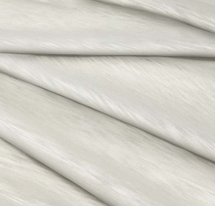 El tejido está impreso con el color liso en la cara delantera por impresión digital textil. El tejido base tiene una textura lisa con una sensación táctil suave y es translúcido al tacto. Además, su textura visual está dominada por una veta jaspeada, lo que le da un aspecto único y moderno. La tela es elástica y cómoda de llevar.
