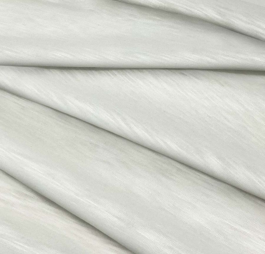 Las características de la tela base se distribuyen en sus texturas y tactos lisos, visualmente translúcidos y jaspeados, y una elasticidad moderada que permite libertad de movimiento en el cuerpo. La aplicación principal de esta tela es en la moda de hombre y mujer, especialmente en prendas de punto como camisetas. En temporada atemporal, esta tela es muy versátil y puede ser usada tanto en prendas de vestir como en deportivas.