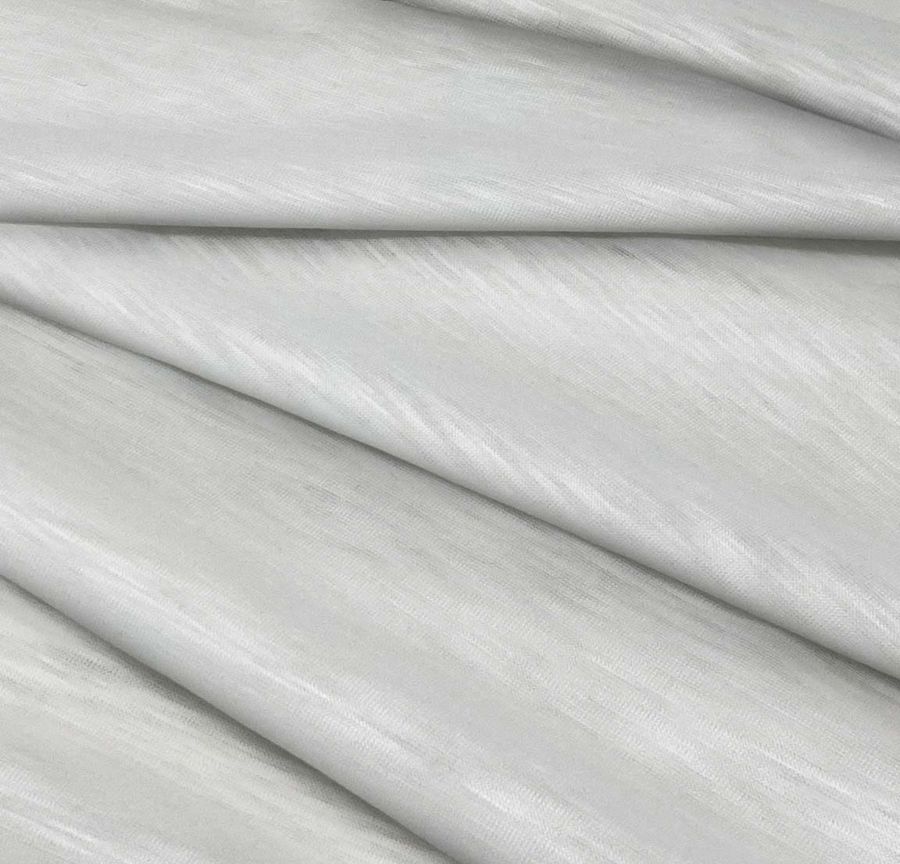 La tela base tiene diversas características notables, como su textura lisa y translúcida, y una textura visual jaspeada que brinda un estilo único. El tacto de la tela es suave y elástico, lo que la hace especialmente adecuada para prendas de punto y camisetas para hombres y mujeres. Además, la tela es atemporal y puede ser utilizada para cualquier temporada.