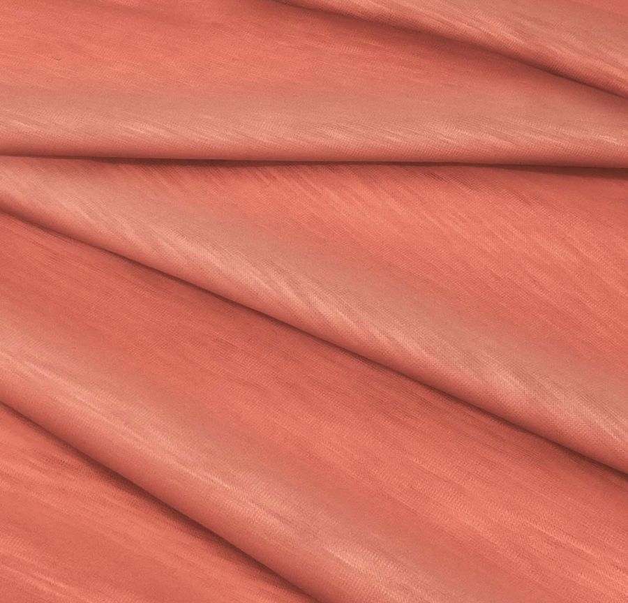 La tela ha sido impresa con el color liso a una sola cara por impresión digital textil, proporcionando una calidad de imagen nítida y duradera. Las características de la tela base incluyen su textura lisa y suave al tacto, su aspecto visual jaspeado y nivel de translucidez. La tela es elástica y fácil de manejar.