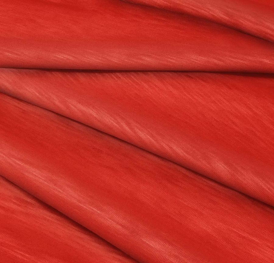 Las características generales de la tela base son su textura lisa, visual translucida y visual jaspeada, además de ser elástica al tacto. Esto hace que sea ideal para moda en prendas de punto, especialmente en camisetas tanto para mujeres como hombres. Por otro lado, el color Rojo Bermejo se destaca por su tonalidad específica, la cual combina perfectamente con colores complementarios como el verde oliva o el azul royal, además de poder ser mezclado con tonos más neutros como el blanco y el negro.