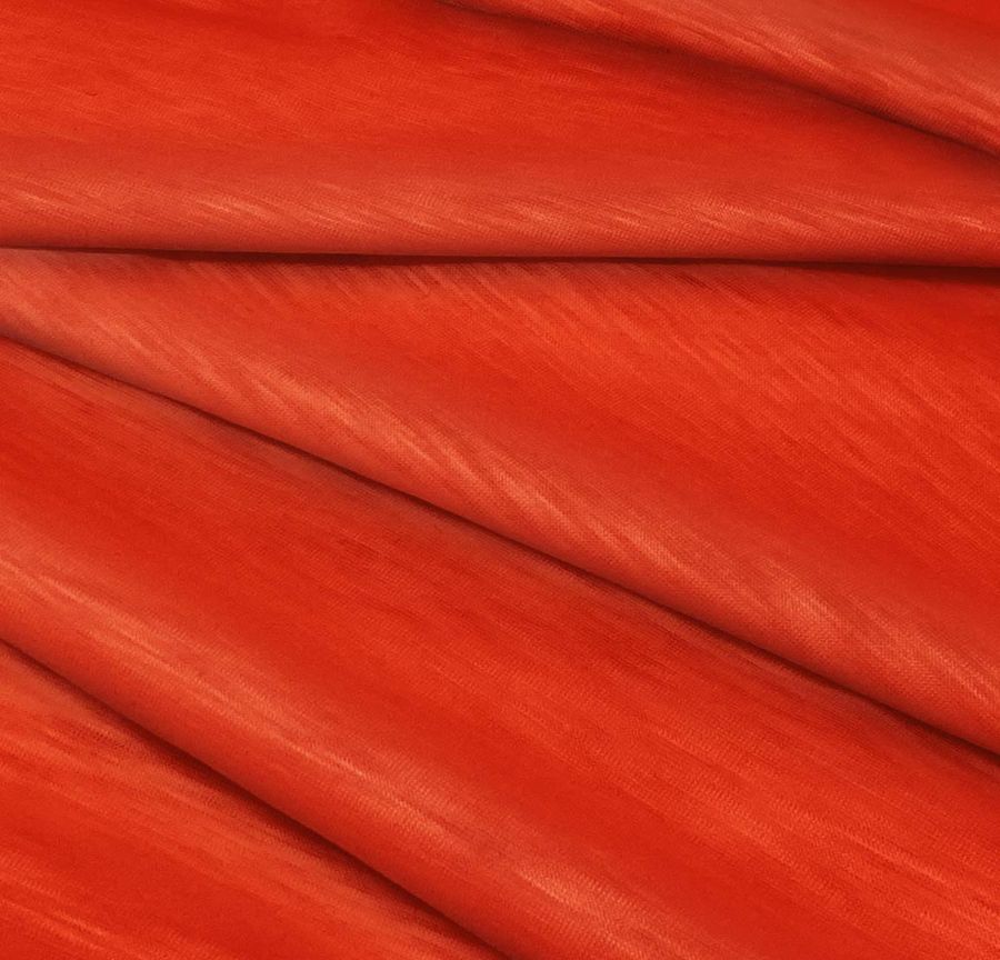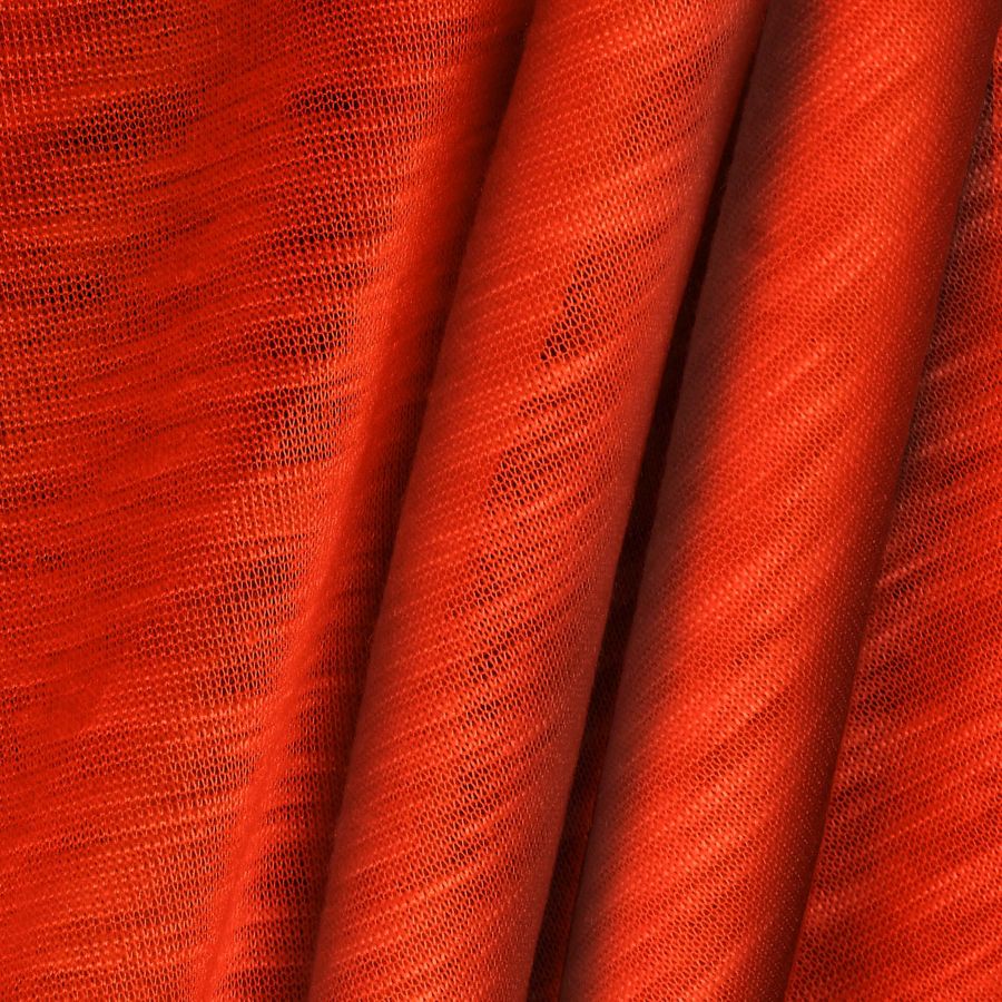 La tela Punto Camiseta Jaspeado - Dubái tiene una composición del 100% de poliéster, con un gramaje de 135 gr/m2 y una anchura de 160 cm. Su color liso impreso es un rojo bermellón de Holanda, que se consigue mediante una tecnología de impresión por sublimación y que se representa a través del CMYK 0 91 98 0. Este color secundario se caracteriza por ser vibrante, potente y llamativo, y destaca por su tonalidad entre rojo y naranja. Combina de forma perfecta con tonos neutros como el blanco, negro y gris, así como con otros colores vibrantes como el amarillo, turquesa y verde.