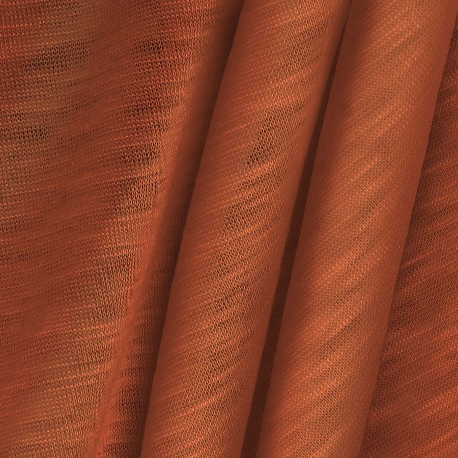 La tela base de esta prenda es el Punto Camiseta Jaspeado - Dubái, una tela de punto compuesta en un 100% de poliéster con un gramaje de 135 gr/m2 y un ancho de 160 cm. El color liso impreso es un Rojo Bermellón Medio con un CMYK de 10 72 79 2. Proporcionando una textura visual y táctil lisa y elástica.