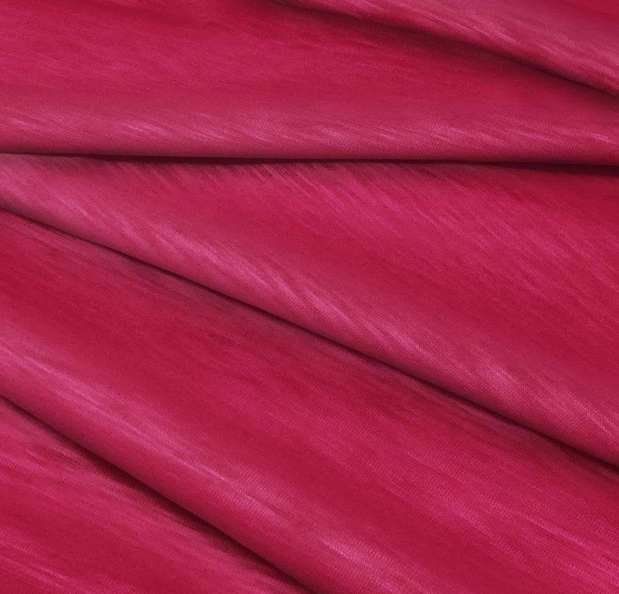 La tecnología de impresión utilizada para fabricar este tejido es la sublimación (poliéster). La sublimación es un proceso en el que se utilizan tintas especiales que se imprimen en papel transfer para luego transferirse por calor y presión al tejido base. La tinta se sublima directamente en las fibras de poliéster, lo que garantiza una impresión duradera y de alta calidad. Es ideal para tejidos sintéticos como este, y permite imprimir diseños complejos y detalles precisos con gran nitidez y brillo. En conclusión, la tela base Punto Camiseta Jaspeado - Dubái impresa en Rojo Granate destaca por su textura y color elegante, lo que la convierte en una excelente opción para prendas de moda.