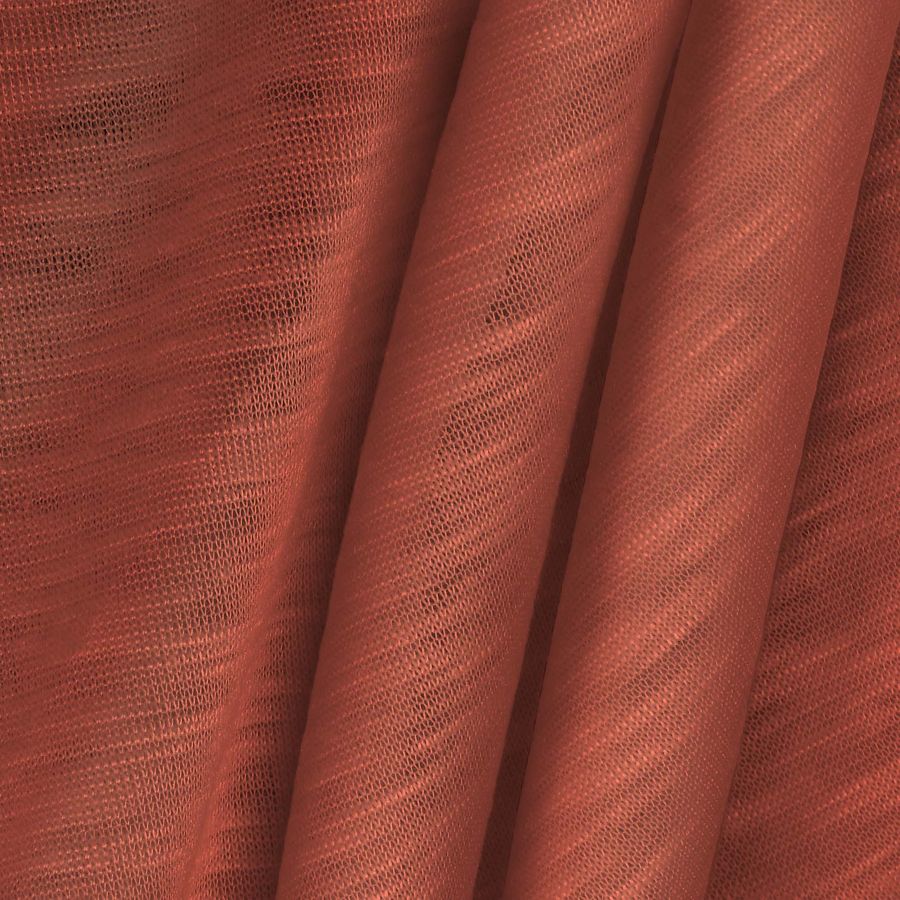 La tela base de la Punto Camiseta Jaspeado - Dubái es una tela de punto compuesta al 100% de poliéster, con un gramaje de 135 gr/m2 y un ancho de 160 cm. El color liso impreso en esta tela es Rojo Jelly Bean, que se obtiene a través de una combinación de tinta Cyan (10), tinta Magenta (73), tinta Yellow (67) y tinta Black (1), con un CMYK de 10 73 67 1. Este color se caracteriza por ser un rojo intenso con un matiz anaranjado, que se puede combinar muy bien con tonos neutros como el gris o el negro, así como con tonos cálidos como el amarillo o el naranja.