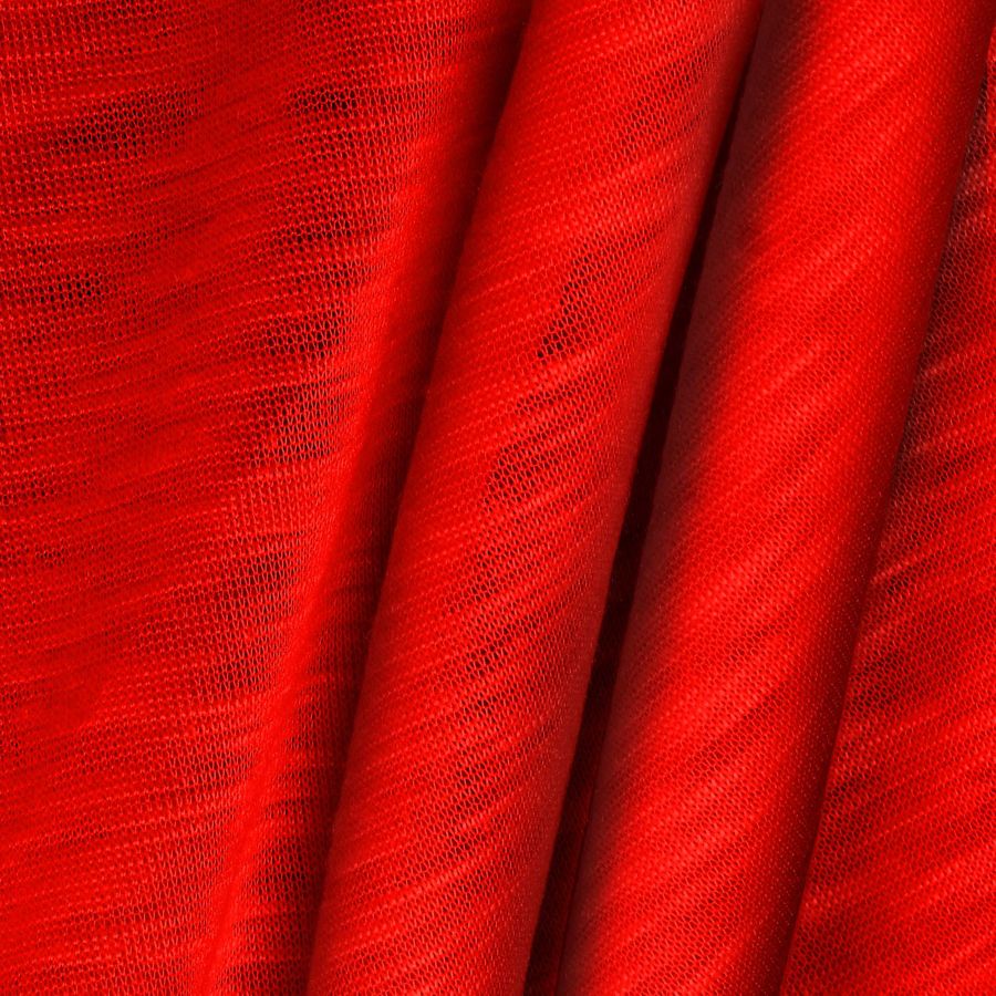 La tela base, Punto Camiseta Jaspeado - Dubái, tiene una composición de 100% poliéster, un gramaje de 135 gr/m2 y un ancho de 160 cm. Su color liso impreso presenta una tonalidad rojo caramelo con un CMYK de 0 94 92 0. Este color se fusiona entre el rojo y el naranja, con un matiz sutilmente dorado. Complementa perfectamente con tonos verdes oscuros, azules, blancos y grises.