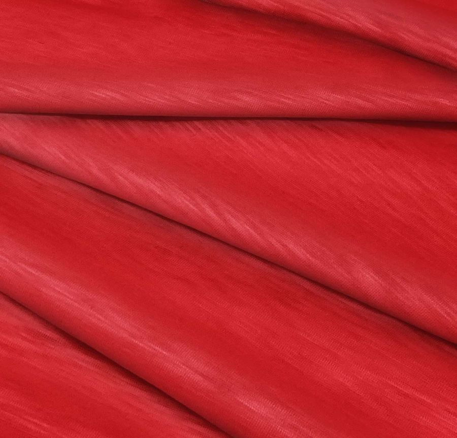 La tela base es el Punto Camiseta Jaspeado - Dubái, una tela de punto de 100% poliéster con un gramaje de 135 gr/m2 y un ancho de 160 cm. El color liso impreso es de tonalidad roja, denominado Coche de Bomberos, con un perfil de color CMYK de 12 97 86 3 y está impreso a una sola cara por impresión digital textil. El color secundario de esta tela es notable por su tonalidad cálida y vibrante, siendo una excelente elección para prendas de vestir que busquen un mayor impacto visual. El color oscila entre el rojo y naranja y combina perfectamente con tonalidades neutras como el blanco negruzco o el gris oscuro, y también se puede mezclar con tonalidades más contrastantes como los azules profundos o los verdes oscuros.