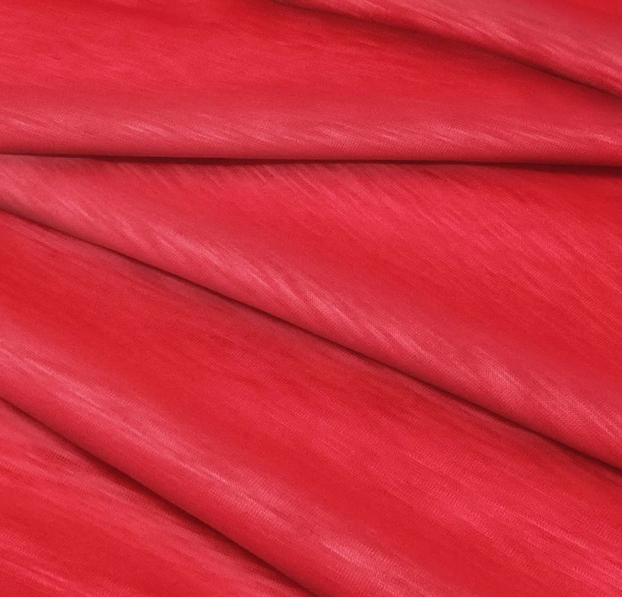 Hay que destacar que este tejido está impreso con el color liso a una sola cara por impresión digital textil, y no es un tejido tintado sino impreso por una sola cara. La textura y el tacto de la tela son lisos y elásticos. Además, su visual es translúcida, lo que otorga una sensación ligera y fluida.