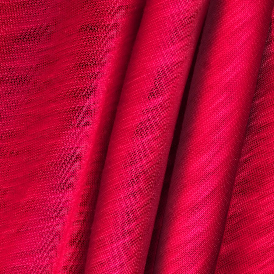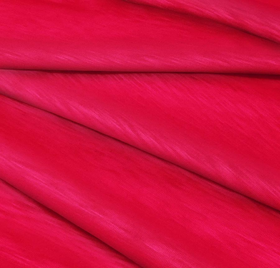 La tela base es Punto Camiseta Jaspeado - Dubái, de composición 100% poliéster con un gramaje de 135gr/m2 y un ancho de 160 cm. El color liso impreso es rojo munsell, con un CMYK de 0 97 66 0. Este color se caracteriza por ser un tono rojo intenso y brillante, con un matiz amarillo y un subtono cálido. Combina perfectamente con tonos blancos, negros, grises y azules, lo que lo hace ideal para prendas de moda masculina y femenina.