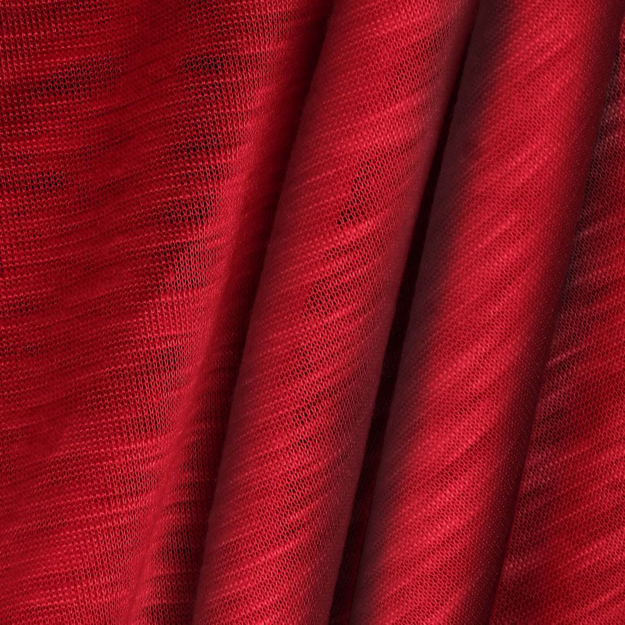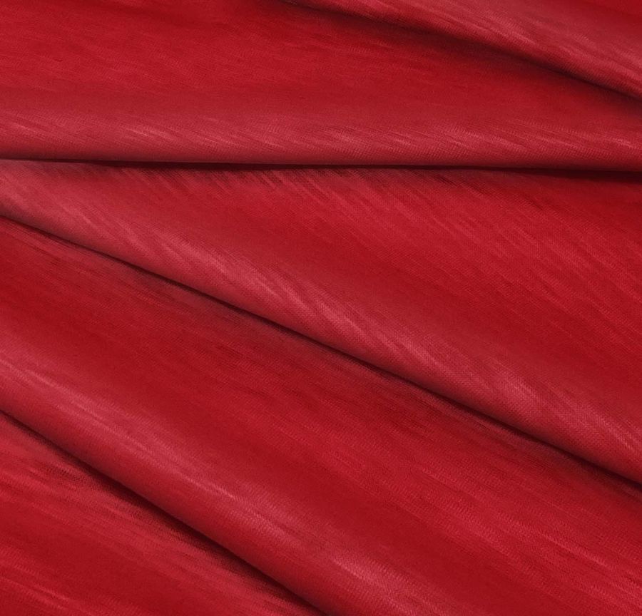 La tela base es el Punto Camiseta Jaspeado - Dubái, de composición 100% poliéster y gramaje de 135 gr/m2. Su ancho es de 160 cm y su color liso impreso es Rojo Rubí, con un CMYK de 25 100 89 24. Este color se caracteriza por ser intenso y luminoso, con una fuerte presencia del magenta y el amarillo. Combina especialmente bien con tonos tierra y neutros, como el beige o el gris. La tela está impresa con el color liso a una sola cara por impresión digital textil.