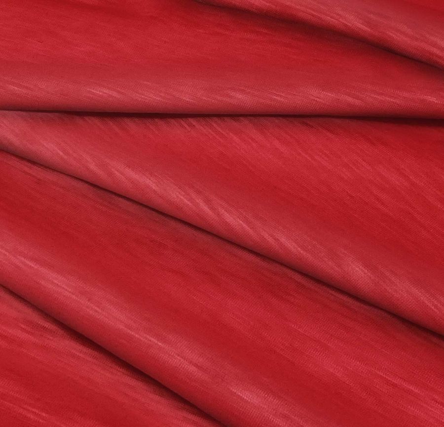 La tela base, Punto Camiseta Jaspeado - Dubái, es una tela de punto de 100% poliéster con un gramaje de 135 gr/m2 y un ancho de 160 cm. El color liso impreso es rojo Upsdell, con una combinación de tintas CMYK de 22, 97, 83 y 15. Este color es un rojo intenso y profundo que combina bien con tonos neutros como el gris y el beige, así como con colores más atrevidos como el azul marino y el morado.