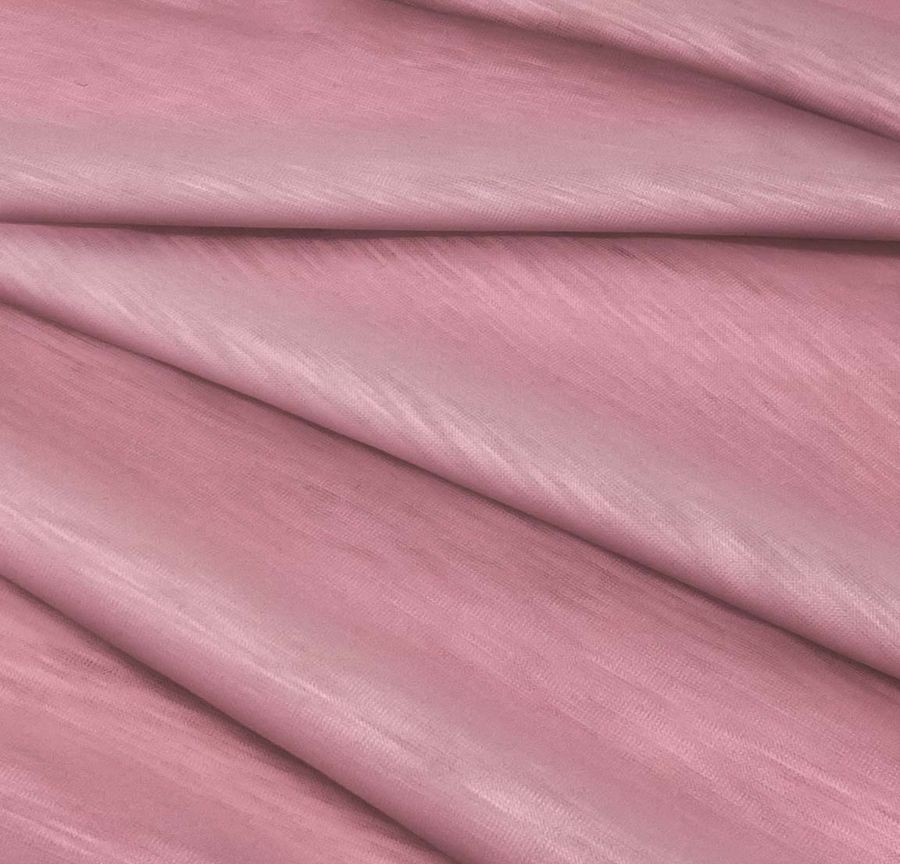 La tela base, Punto Camiseta Jaspeado - Dubái, es una tela de punto compuesta por 100% poliéster con un gramaje de 135gr/m2 y una medida de 160 cm de ancho. El color liso impreso, Rubor, tiene un CMYK de 13 57 28 2. Es un color secundario que posee un matiz rosa suave y un brillo sutil, transmitiendo calidez y dulzura. Combinando perfectamente con colores como el blanco, negro, gris y tonalidades en verde y azul. Este tejido está impreso a una sola cara por impresión digital textil, lo que significa que el color se fija únicamente en una de las caras del tejido y no a través de la fibra.