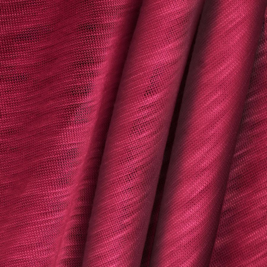 La tela base de esta prenda es el Punto Camiseta Jaspeado - Dubái, con un gramaje de 135 gr/m2 y un ancho de 160 cm. El color liso impreso es Ruby big dip, con un CMYK de 26 95 55 24. Este color se caracteriza por un rojo intenso con un matiz de rosa oscuro, que lo hace un color vibrante y moderno. Combina muy bien con colores neutros como el blanco o el negro, así como con colores complementarios como el verde o el celeste.
