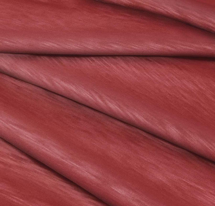La tela base, Punto Camiseta Jaspeado - Dubái, es una tela de punto con una composición del 100% de poliéster, con un gramaje de 135 gr/m2 y un ancho de 160 cm. Una de las características más resaltantes es su color secundario, un Rojo Topacio Ahumado con una combinación de tintas cian, magenta, amarilla y negra, en un CMYK de 29 81 61 29. Este color es simbólicamente intenso, con rasgos de vitalidad, valentía y liderazgo en su tonalidad oscurecida y atractiva. Además, se combina perfectamente con una gama de colores tierra, neutros y algunos tonos pasteles. La tela está impresa con el color liso a una sola cara por impresión digital textil, lo que garantiza un acabado de alta calidad y durabilidad.