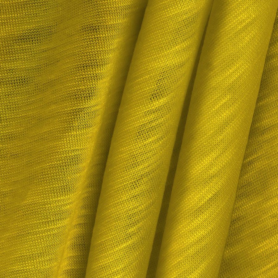 La tela base es el Punto Camiseta Jaspeado - Dubái, compuesta por 100% POLIÉSTER con un gramaje de 135 gr/m2 y una anchura de 160 cm. El color liso impreso en la tela es de un amarillo huevo, que refleja un porcentaje de 0% Cyan, 16% Magenta, 91% Yellow y 0% Black en su composición CMYK. Este color secundario se identifica con una sensación energética y cálida, aportando brillo y vitalidad a la prenda. Combina perfectamente con otros colores cálidos como los anaranjados o rojizos, así como con los tonos más neutros como el blanco o el gris. La tela está impresa con el color liso a una sola cara por impresión digital textil, lo que permite obtener un resultado de alta calidad manteniendo la suavidad y flexibilidad de la tela.