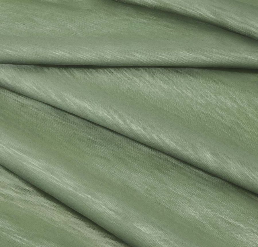 La tela base utilizada en este material es el Punto Camiseta Jaspeado - Dubái, un tejido de punto con una composición al 100% de poliéster. El color liso impreso en este tejido es un verde caqui oscuro, que se caracteriza por un CMYK de 55 33 58 17 en su composición de impresión. Este color secundario es asociado simbólicamente con la naturaleza y su habilidad para camuflarse en cualquier entorno, lo que lo convierte en un color versátil y fácil de combinar con otros colores neutros como marrones, grises y blancos.