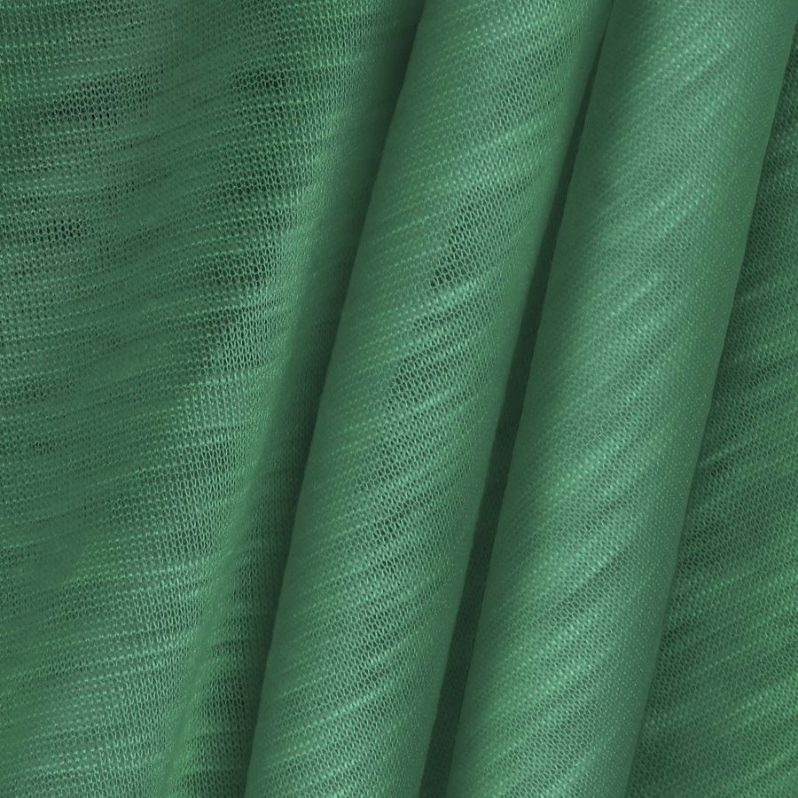 La tela base de este tejido se llama Punto Camiseta Jaspeado - Dubái, con una composición 100% poliéster y un gramaje de 135 gr/m2. Su ancho es de 160 cm y presenta un acabado liso translúcido con una textura lisa, jaspeada y elástica. El color secundario impulsado es Verde ForestGreen, con un CMYK de 66 12 64 1, un tono oscuro que combina a la perfección con tonos tierra y marrones. Este tejido está impreso con el color liso a una sola cara por impresión digital textil, lo que significa que no es un tejido teñido sino impreso.