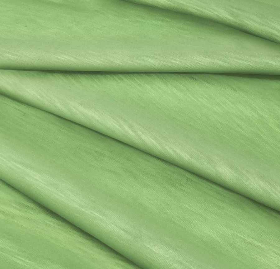 La tela base es el Punto Camiseta Jaspeado - Dubái, compuesta por 100% poliéster con un gramaje de 135 gr/m2 y ancho de 160 cm. El color liso es verde pistacho con un CMYK de 50 0 68 0, impreso a una cara por impresión digital textil. El color secundario es una mezcla de verde y amarillo, evocando una sensación primaveral y fresca. Combina especialmente bien con el negro, azul y blanco.