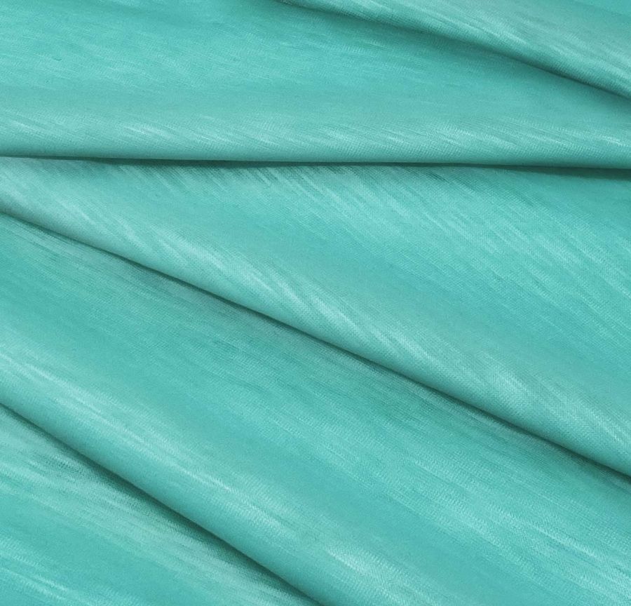 Esta tela está impresa con el color liso a una sola cara por impresión digital textil, lo que significa que no es un tejido tintado, sino impreso de forma digital en una sola cara. La textura de la tela es lisa al tacto y visualmente se aprecia tanto la translucidez como el efecto jaspeado característico de la tela de punto.