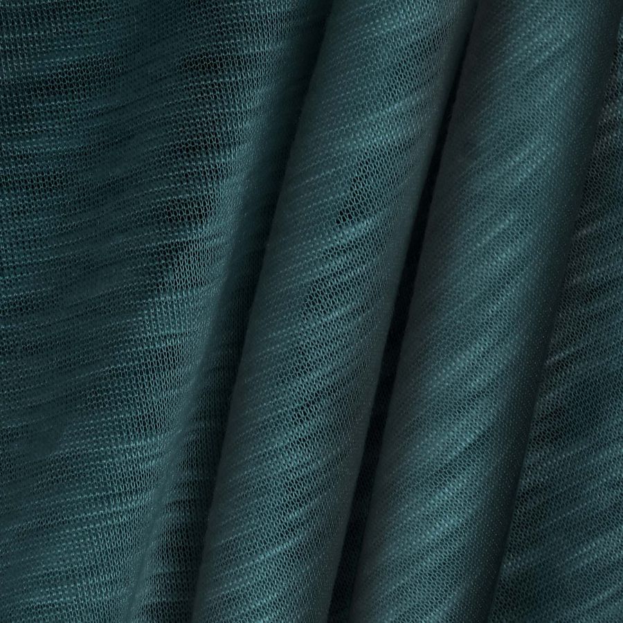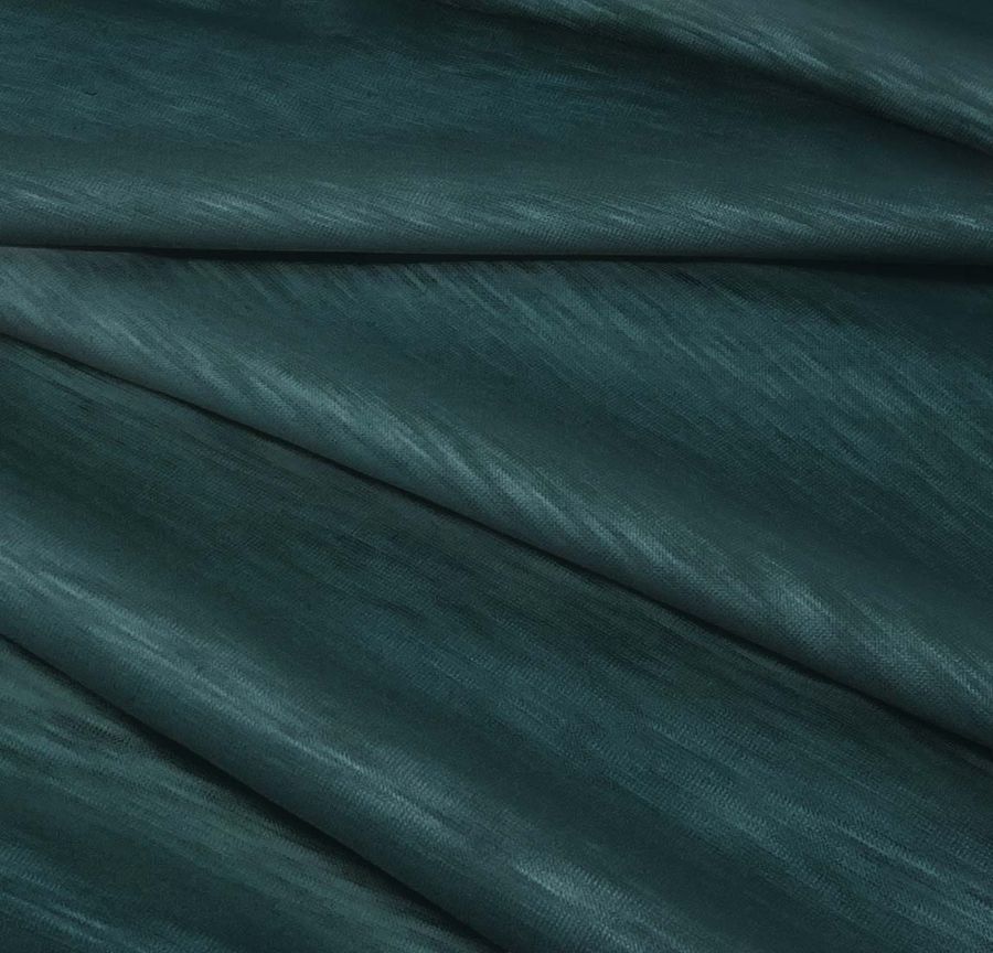 La tela base de este tejido es el Punto Camiseta Jaspeado - Dubái, una tela de punto 100% poliéster de 135 gr/m2 y 160 cm de ancho. El color liso impreso es verde azulado, con un CMYK de 84 54 55 59, lo que le da un aspecto fresco y vibrante. Este color secundario combina perfectamente con otros tonos azules, verdes y morados, permitiendo un espectro de combinaciones interesantes y modernas.