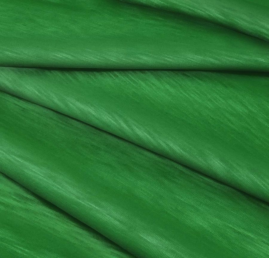 La tela base es el Punto Camiseta Jaspeado - Dubái, de tipo punto y composición 100% poliéster, con un gramaje de 135 gr/m2 y ancho de 160cm. El color liso impreso es Verde Billar, con un CMYK de 84 31 98 19. Este color transmite la frescura de la naturaleza y el equilibrio emocional. Se combina perfectamente con el color blanco y negro, así como con tonos tierra, beige y gris. La tela está impresa con el color liso a una sola cara, por impresión digital textil, con lo que se obtiene una alta definición de imagen y riqueza de color.