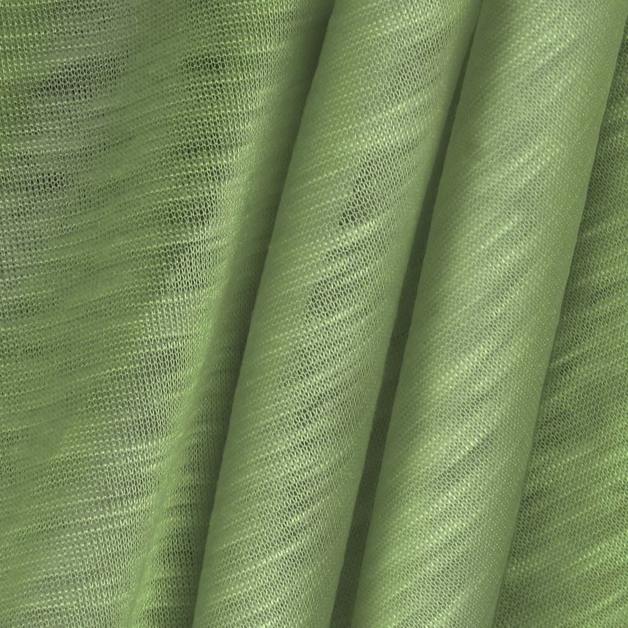 El tejido base de esta tela es Punto Camiseta Jaspeado - Dubái, un tipo de tela de punto de composición 100% poliéster con un gramaje de 135 gr/m2 y un ancho de 160 cm. El color secundario impreso es un verde cedro con un CMYK 37 0 60 0, que combina perfectamente con tonos amarillos y naranjas. Es importante destacar que esta tela está impresa con el color liso a una sola cara por impresión digital textil, lo que significa que no es un tejido tintado sino impreso por una sola cara.