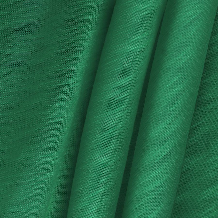 La tela base de nuestra tela de punto Camiseta Jaspeado - Dubái, está compuesta por un 100% de poliéster, tiene un gramaje de 135 gr/m2 y un ancho de 160 cm. El color liso impreso en esta tela es de un vibrante verde Kelly, con un CMYK de 77 12 73 1. Se caracteriza por ser un color fresco y vibrante que se integra perfectamente en el mundo de la moda. Combina de manera excepcional con otros colores como el blanco, el negro o el gris.