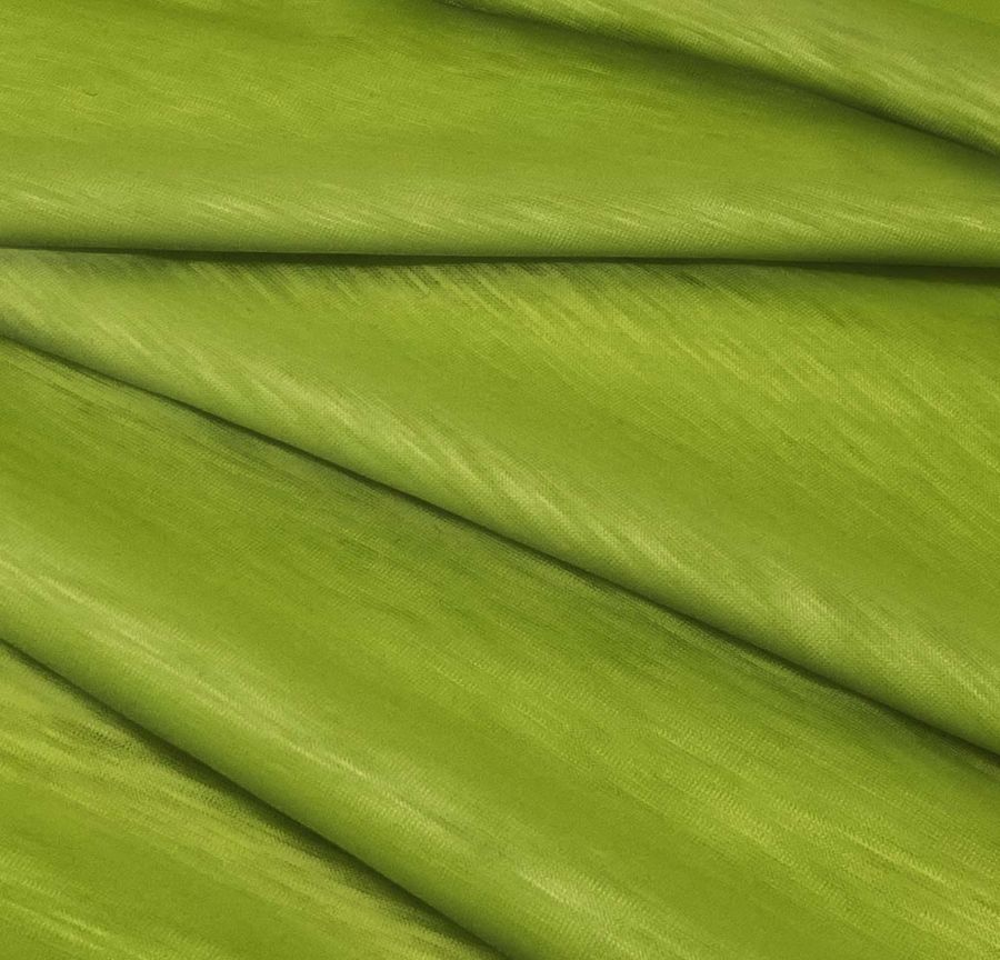 La tela base de la Punto Camiseta Jaspeado - Dubái es una tela de punto 100% Poliéster con un gramaje de 135 gr/m2 y un ancho de 160 cm. Su color liso impreso es un verde mate con un CMYK de 55 26 100 10. Este color se caracteriza por su tonalidad suave y relajante, evocando la naturaleza y la calma. Combina perfectamente con otros tonos suaves como el beige, el blanco, el gris claro y el lila.