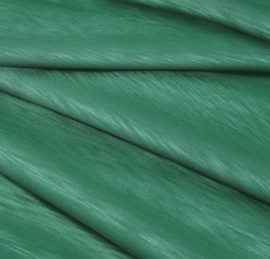 La tela base es la Punto Camiseta Jaspeado - Dubái, una tela de punto compuesta por 100% poliéster de 135 gr/m2 y un ancho de 160 cm. Su color liso impreso es un verde pátina que se logra mediante la combinación de las tintas Cyan (76), Magenta (33), Yellow (63) y Black (20) con un CMYK de 76 33 63 20. Este color secundario simboliza la naturaleza, la vida y la esperanza, y combina perfectamente con colores como el marrón, el gris, el blanco y el negro.